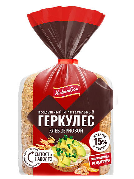 В зерновом хлебе «Геркулес» высокое содержание пищевых волокон, которые медленно усваиваются, а значит, вы дольше остаетесь сытыми.