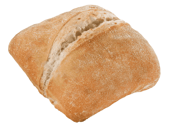 Невероятно мягкий итальянский пшеничный хлеб Миничиабатта с крупной пористостью и по-настоящему "деревенской внешностью": продольный надрез раскрывающий пористый мякиш и присыпанная мукой хрустящая корочка.