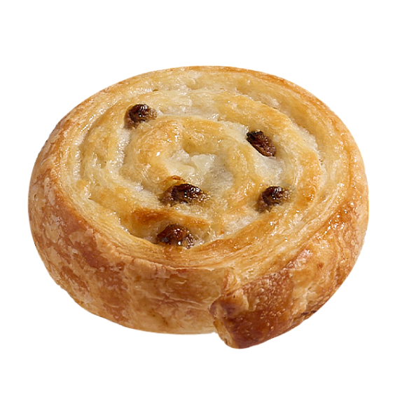 Нежная, хрустящая слоеная основа, состоящая из множества тонких, воздушных слоев, пропитанных заварным кремом с насыщенным молочно-ванильным ароматом и дополненная изюмом.